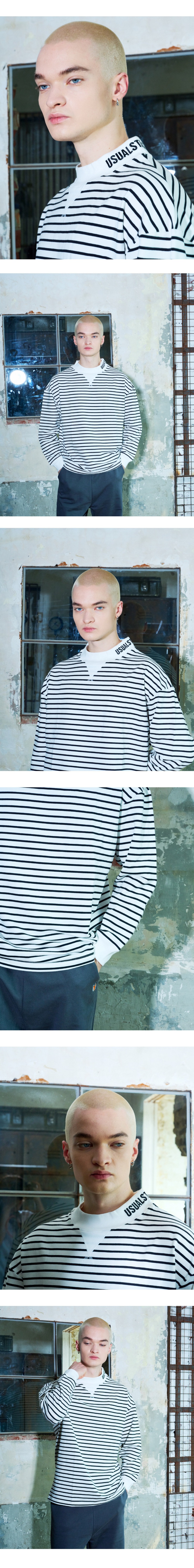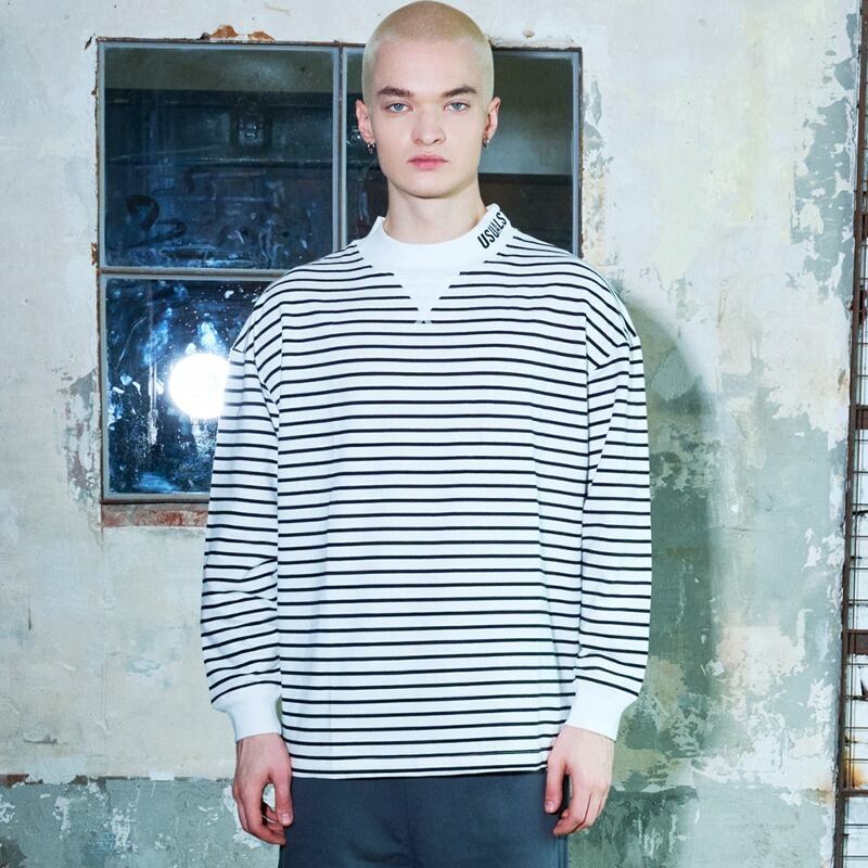 Mock neck border long sleeve T WHITE