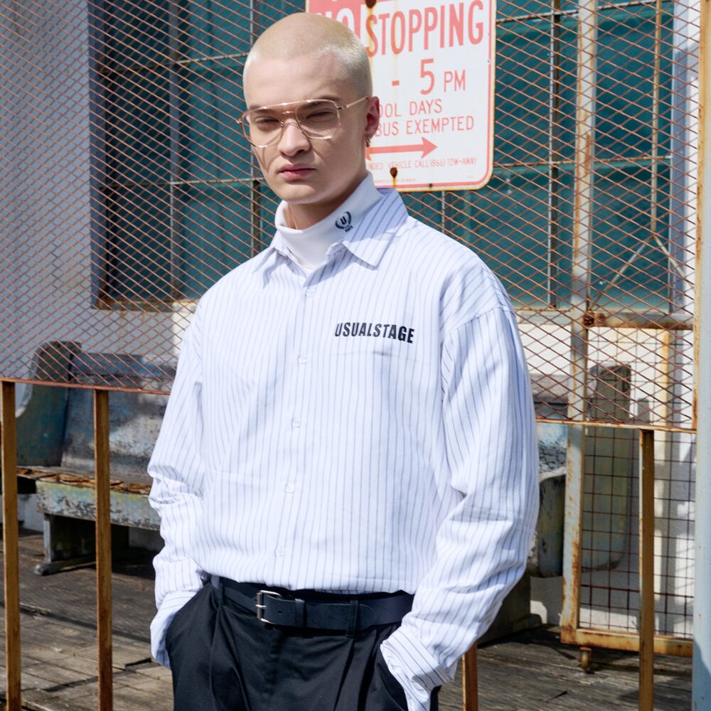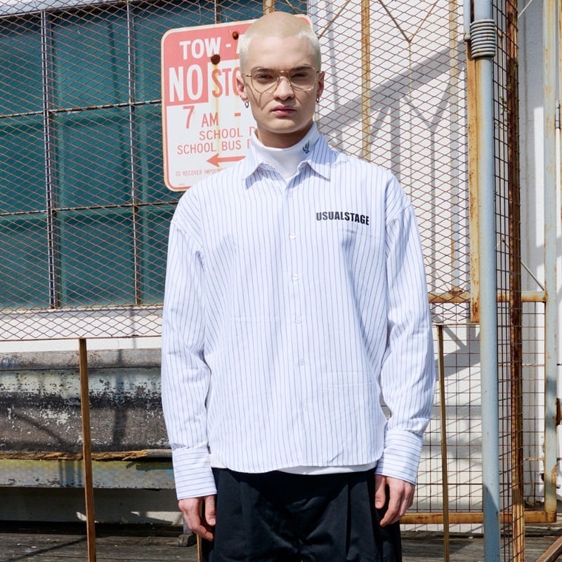 ・ストライプ レギュラーシャツ BLACK