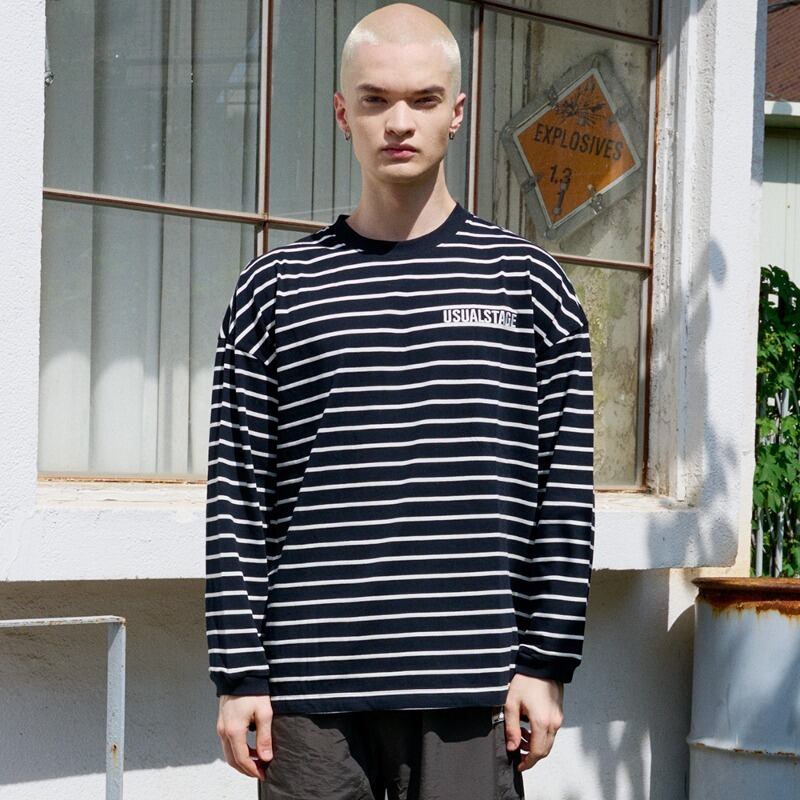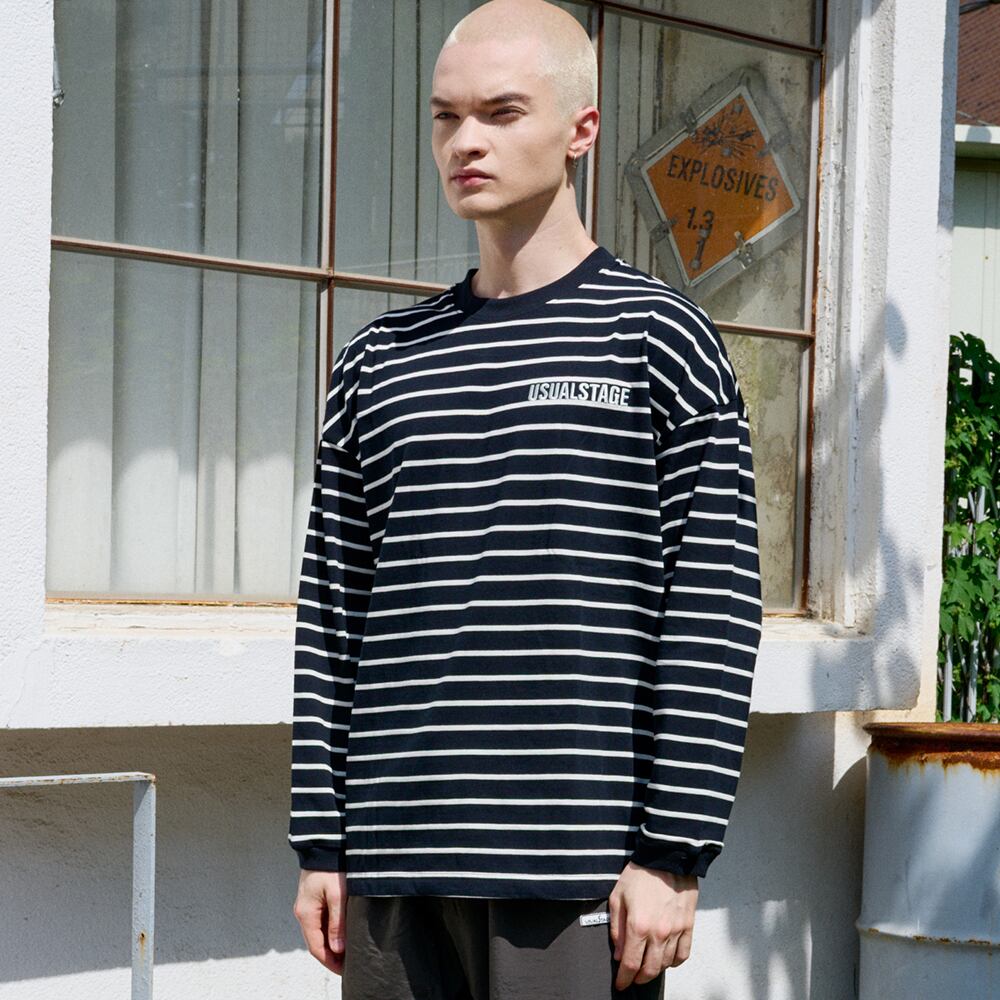 ・ボーダー ロングスリーブT BLACK